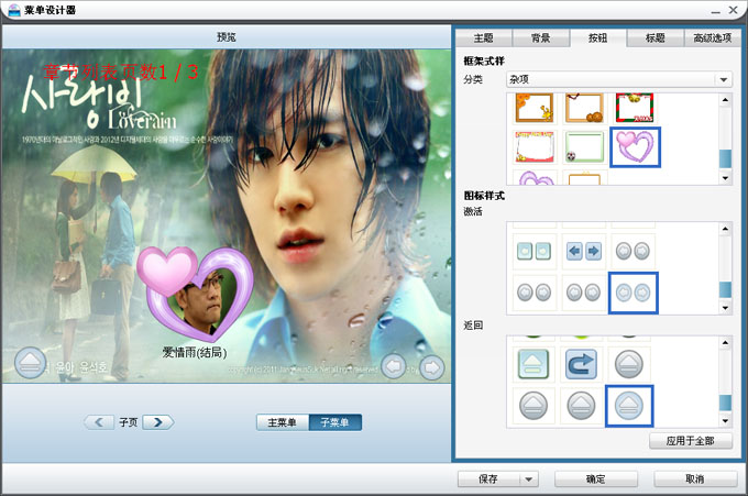 3)、dvd菜單制作(有新功能):背景圖片、背景音樂、背景視頻,也可以不設置菜單,刻錄后會自動播放.