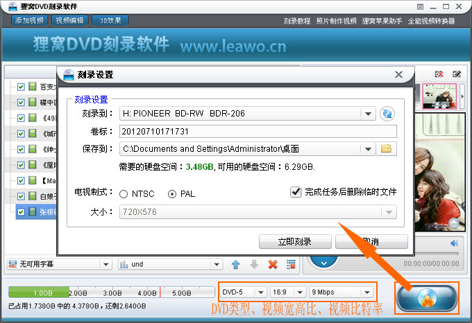 4)、支持制作ISO、PAL/NTSC比例16:9和4:3、顯示輸出體積,支持D5(4.7G)、D9(8.5G).