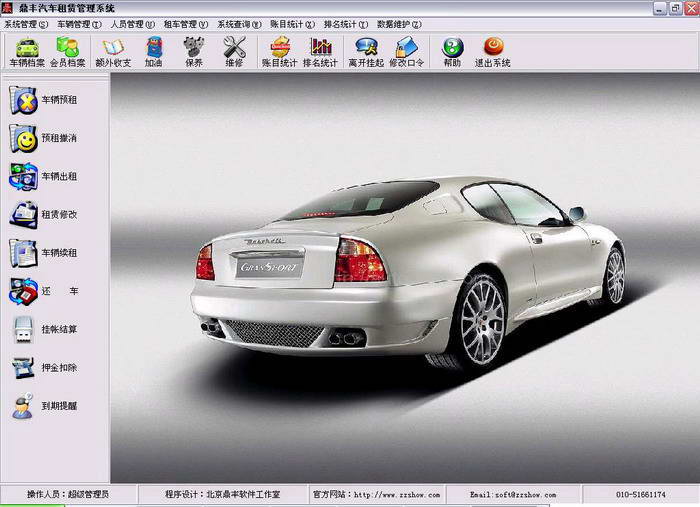 <鼎豐汽車租賃管理>是針對汽車租賃行業(yè)量身定做的一套行業(yè)管理軟件,軟件集成現(xiàn)在車輛租賃行業(yè)流行的租車流程,包含了車輛預租、預租撤消、車輛租賃,車輛續(xù)租、還車結算、租賃到期提示等功能,操作簡易,界面清晰。同時軟件提供了豐富的查詢報表:預租查詢、預租撤消查詢、租車查詢、車輛租賃排名等等,使您可以時時對數(shù)據(jù)進行多方位的統(tǒng)計查詢。軟件的車輛管理模塊更加方便了您對車輛的管理,提供了加油、保養(yǎng)、維修、保險等多方位一體化的管理模式,讓您輕松應對。對租車客戶采用普通客戶和會員客戶的分類管理,使您更好的了解和把握客戶群體。使用<鼎豐汽車租賃管理>將使您輕松成為汽車租賃行業(yè)的專家!