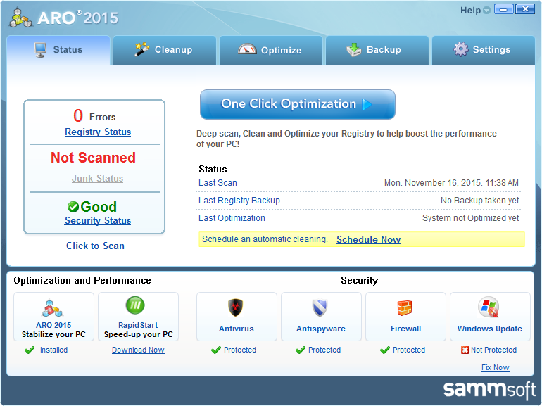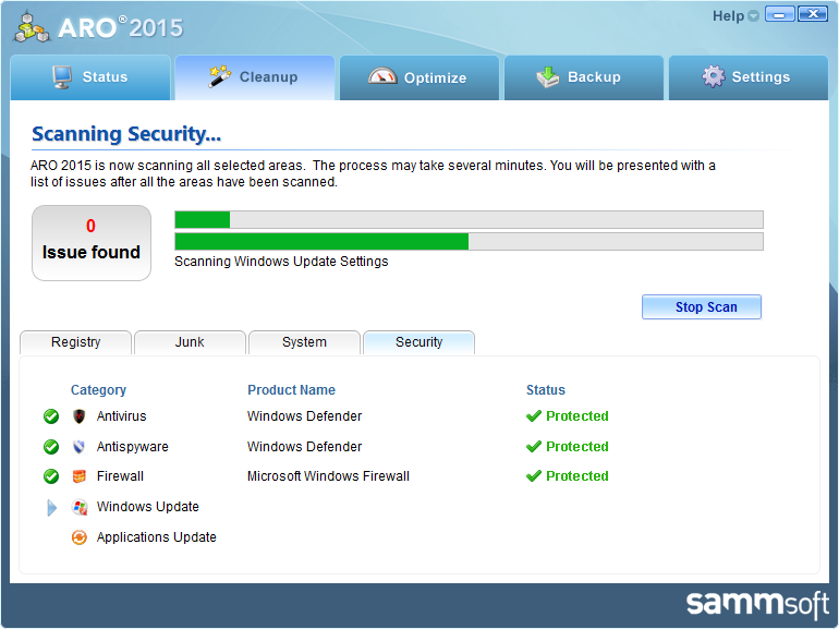 ARO掃描3個主要領(lǐng)域:注冊表,垃圾郵件和安全。注冊表掃描分析Windows注冊表中的錯誤的13個地區(qū)和indentifies可能的注冊表的調(diào)整。