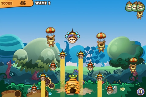 這是一款有趣的防御射擊類(lèi)游戲,畫(huà)風(fēng)很可愛(ài)!熊喜歡吃蜂蜜,這是打小兒聽(tīng)故事的時(shí)候我們就知道的事情。這一次,戰(zhàn)火在泰迪熊和小蜜蜂之間蔓延起來(lái),一大批的泰迪熊乘著降落傘而來(lái),想要搶走小蜜蜂的蜂蜜。玩家需要幫助小蜜蜂們保衛(wèi)珍貴的蜂蜜和蜂巢。玩家需要操縱畫(huà)面底部的大炮,點(diǎn)擊發(fā)射蜜蜂。每一關(guān)游戲都會(huì)有一個(gè)目標(biāo),玩家只要達(dá)到目標(biāo)就可過(guò)關(guān)。游戲里還有多種道具可供選擇。