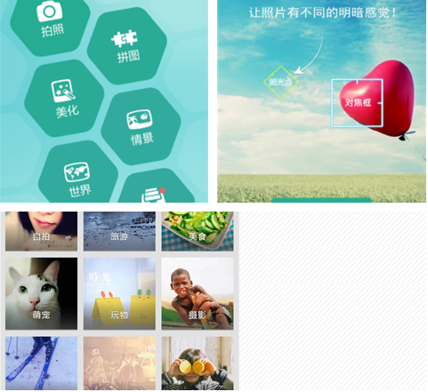 1、多鏡頭拍照:內(nèi)置了多款可更換“鏡頭”(四格LOMO、二格鏡頭、拼圖鏡頭、微縮景觀鏡頭、傳統(tǒng)鏡頭)2、照片美化處理:可以對(duì)照片即時(shí)進(jìn)行顏色處理、裝飾、邊框等美化功能,超過40種后期“PS”功能。