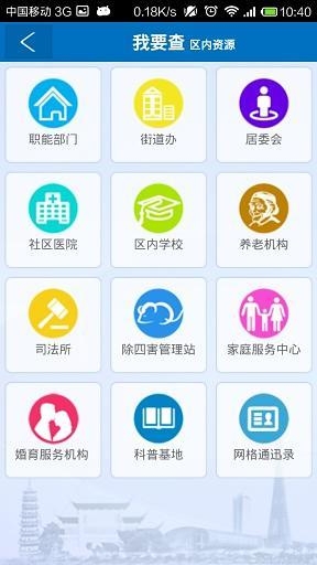 7、我要查:查詢(xún)區(qū)18條街道、257個(gè)居委會(huì)及職能部門(mén)地址和聯(lián)系電話等公共資源。