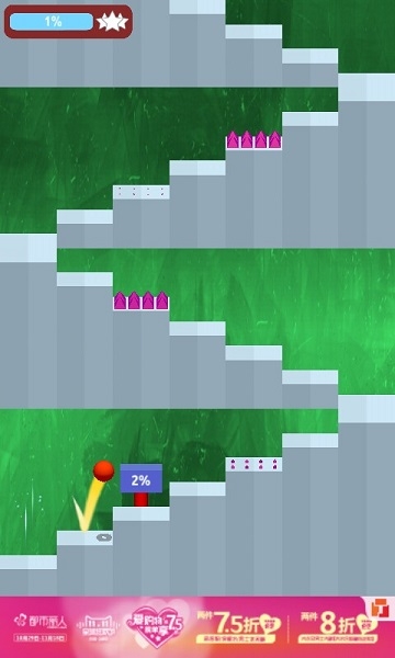 《快速跳躍Jumpy》是一款非常虐心的休閑娛樂游戲。雖然它設(shè)有不同的關(guān)卡可以挑戰(zhàn),不過必須完成了前一個關(guān)卡,之后的進度才能進行解鎖喲。