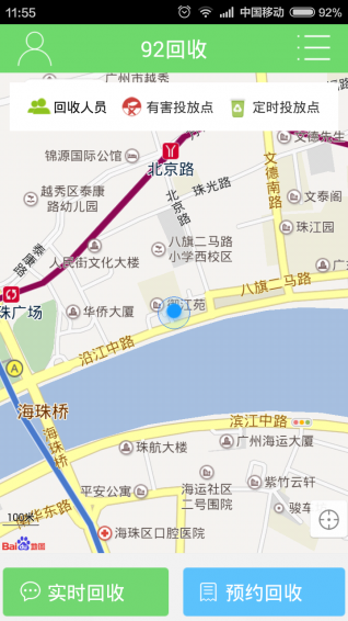 位置服務(wù):92回收APP會將有害垃圾投放點位置信息集成進來,居民通過定位可輕松查詢到距離你最近的有害垃圾投放點;
