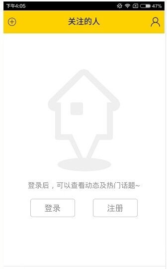 注冊完成后,進(jìn)去首頁。這里你將會看到你關(guān)注的人的動態(tài)。