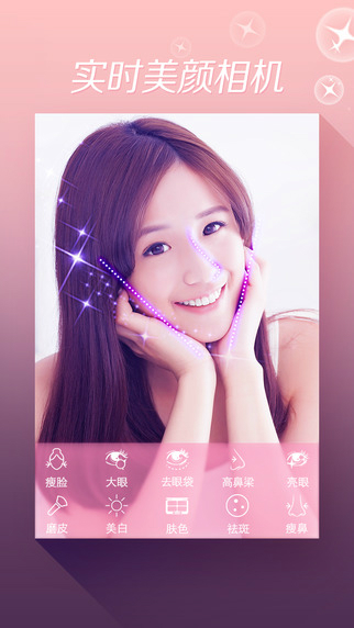 【自拍實(shí)時(shí)美膚】在你按快門(mén)前、擺pose時(shí),磨皮美白瘦臉已經(jīng)同步了!打開(kāi)相機(jī)即刻美膚。