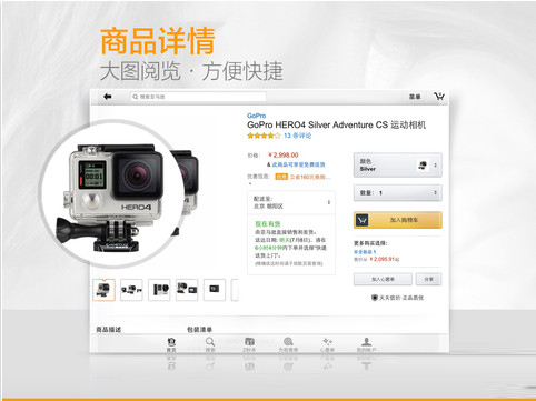 快速搜索,獲得產(chǎn)品詳情、閱讀評論并購買 Amazon.cn 和其他商家提供的數(shù)千萬產(chǎn)品。通過您的現(xiàn)有亞馬遜帳戶登錄,訪問購物車,選擇同樣的支付、以及配送方式和訂單查詢服務(wù)。