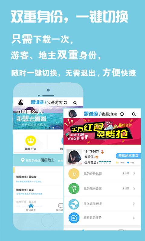 跟誰(shuí)游,旅游界的Uber,結(jié)識(shí)無(wú)數(shù)海外當(dāng)?shù)厝A人帥男靚女,體驗(yàn)更精彩的定制旅行。“跟誰(shuí)游”,是一款基于海外旅游的APP應(yīng)用,是全球各國(guó)華人精英團(tuán)隊(duì)創(chuàng)辦的海外旅游C2C共享平臺(tái),主要提供海外伴游服務(wù),并集海外游實(shí)用貼士和目的地推薦信息等板塊服務(wù)。