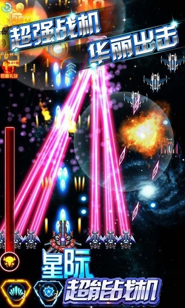 《星際超能戰(zhàn)機(jī)》是一款高品質(zhì)緊張刺激的飛行射擊游戲,《星際超能戰(zhàn)機(jī)》操作簡單手感爽快,輕松體驗飛行樂趣,是射擊類游戲愛好者不容錯過的一款佳品。除了運用高超的閃避子彈技術(shù)來挑釁boss虐殺怪物,玩家還可以通過強(qiáng)化、進(jìn)階來快速提升戰(zhàn)斗力,在數(shù)值上甩掉敵人兩條街......猶豫什么呢,趕快加入吧!
