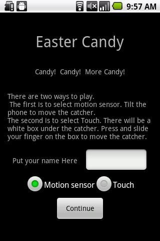 復(fù)活節(jié)糖果是一款十分有意思的休閑游戲,這款游戲畫(huà)面精致,內(nèi)容設(shè)計(jì)豐富有趣,玩家在游戲中有兩種游戲方式可供選擇,第一種方法是選擇運(yùn)動(dòng)傳感器,傾斜手機(jī)移動(dòng)捕手;二是要選擇觸摸,捕手下會(huì)有一個(gè)白盒,按包裝盒上滑動(dòng)你的手指移動(dòng)捕手,通過(guò)這兩中方法,我們要盡可能多的抓到丟糖果的兔子,為復(fù)活節(jié)做好準(zhǔn)備。