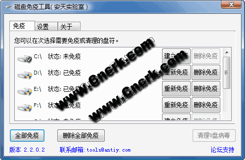 磁盤免疫工具是一款可以對磁盤和移動盤建立免疫目錄,防止病毒自動運行,清理常見U盤病毒的小工具