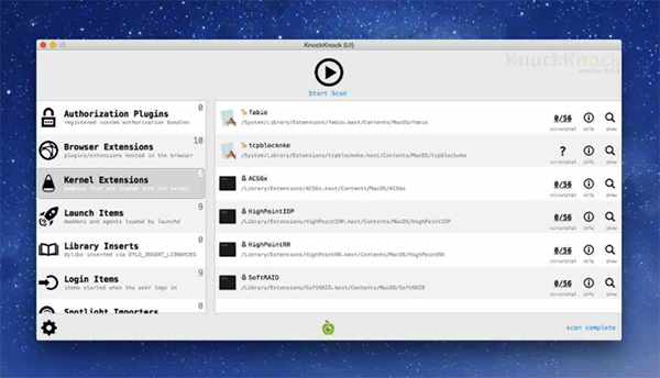 KnockKnock Mac版是一款功能強大的殺毒工具,對于長期潛伏在電腦中一直反復(fù)安裝的惡意軟件,KnockKnock它會在第一時間發(fā)現(xiàn)并且清楚他們,清楚完畢后重新啟動電腦就能完成修復(fù)!