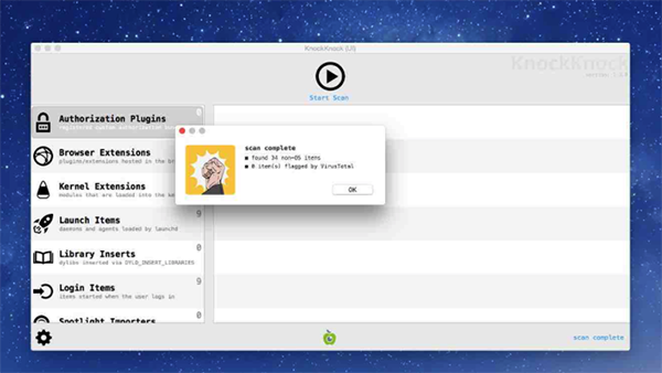 KnockKnock是一款為你顯示那些反復(fù)安裝在Mac電腦上的軟件。通過發(fā)現(xiàn)反復(fù)安裝的軟件,從而顯示出那些惡意軟件,從而及時刪除它們。