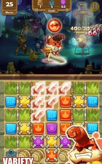 連接三個(gè)或更多相同顏色的方塊進(jìn)行消除在限定的步數(shù)內(nèi)完成目標(biāo)即可通關(guān)