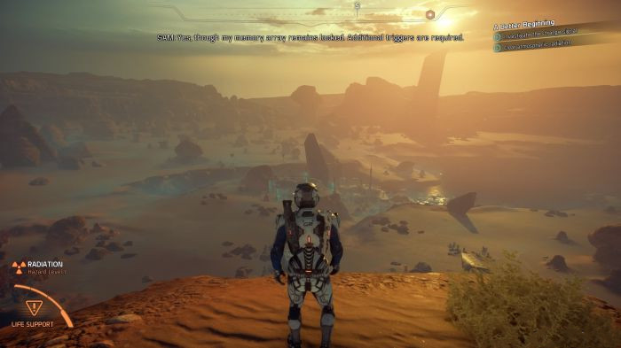 《質(zhì)量效應(yīng)》系列一直都有那么一點(diǎn)開放世界的特征,但本質(zhì)上,這還是一個(gè)根紅苗正的RPG系列,且系列的前三部作品都和開放世界沒有半點(diǎn)關(guān)系。盡管緊湊而精致的關(guān)卡與隨之而來的探索體驗(yàn)是系列的一大特點(diǎn),可《質(zhì)量效應(yīng):仙女座》還是高調(diào)的擁抱了開放世界的理念。