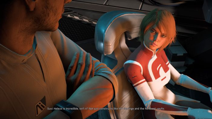 簡(jiǎn)而言之,你很難看出自己在對(duì)話上的選擇會(huì)對(duì)游戲的進(jìn)程產(chǎn)生什么影響,你同時(shí)也很難看出自己與隊(duì)友之間的關(guān)系在這種對(duì)話中產(chǎn)生了什么樣的互動(dòng)。事實(shí)的真相很令人感到失望,那就是,基本沒什么影響也基本沒什么互動(dòng)。游戲中的關(guān)鍵選擇非常的少,能夠影響我們與其他角色關(guān)系的選項(xiàng)也非常的少。與角色聊天雖然也是《質(zhì)量效應(yīng):仙女座》樂趣的重要組成部分,但由于缺少了在結(jié)果層面的真正影響力,終究還是讓人有點(diǎn)提不起興致。