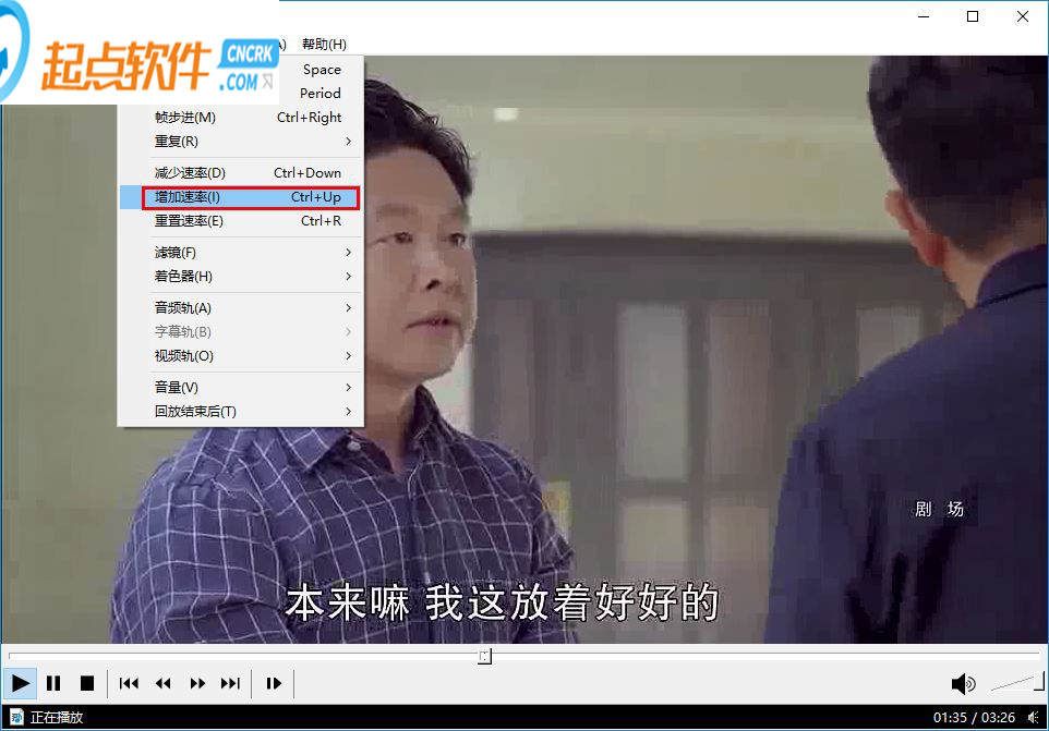 7、當然,用戶還可以通過Ctrl+Up加速播放(上箭頭圖標)、Ctrl+down減速播放(下箭頭圖標)。