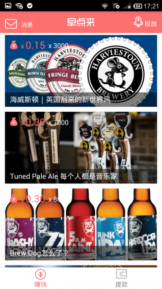 早點(diǎn)來app是一個(gè)全新的消費(fèi)引導(dǎo)和信息推廣服務(wù)平臺(tái),你可以在平臺(tái)上看到許多商家發(fā)布的新聞消息,讓你了解最新的餐廳小吃,還能分享給朋友圈,當(dāng)滿足一定要求就可以獲得一定金錢獎(jiǎng)勵(lì),非常的實(shí)用。