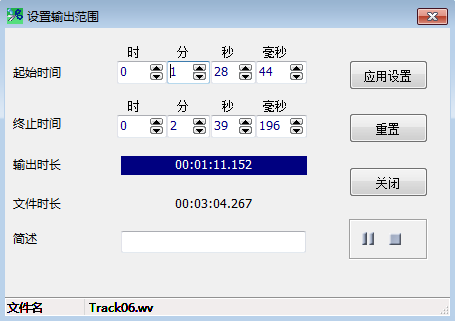 通過(guò)選擇光盤(pán)的Cda文件抓取CD音軌(CDRipping),提取選擇時(shí)間段的內(nèi)容。