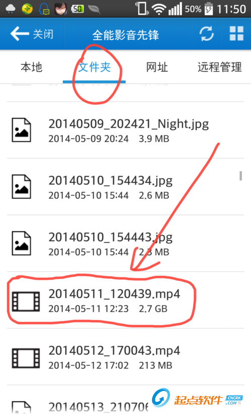 現(xiàn)在來看看主要的播放功能吧,看看效果如何,點擊文件夾,可以查看手機上的視頻的文件。點擊一個進行播放。