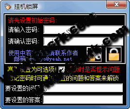 桌面掛機(jī)鎖 單獨(dú)的1個(gè)exe程序,高級(jí)設(shè)置內(nèi)可以設(shè)置密碼保護(hù)問(wèn)題和答案.在忘記密碼時(shí),可以通過(guò)問(wèn)題和答案來(lái)解鎖,可以網(wǎng)吧用,也可以家庭用,界面簡(jiǎn)介,美觀!(已支持Win7/Win2008)