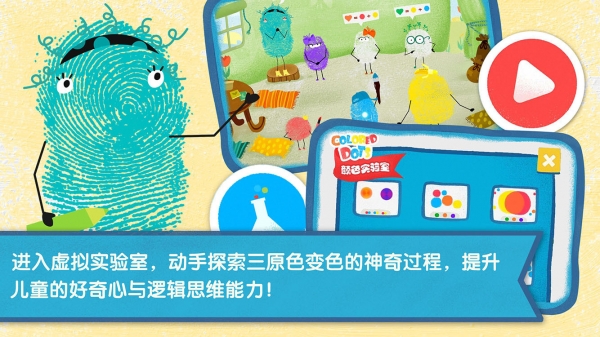 * 進(jìn)入虛擬實(shí)驗(yàn)室,動(dòng)手探索三原色變色的神奇過程,提升兒童的好奇心與邏輯思維能力!