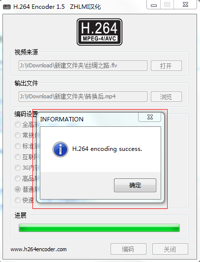 下載解壓后,運行 h264encoder.exe 打開軟件,分別選擇您要轉(zhuǎn)換的視頻文件,以及轉(zhuǎn)換后文件存放的目錄