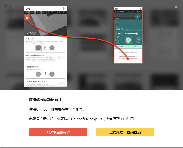 1.創(chuàng)建交互,拖一拖將設計圖導入,在工作頁上拖動鼠標創(chuàng)建交互區(qū)域,然后鏈接到其它頁面,即可生成交互。