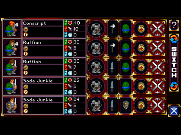 與傳統(tǒng)RPG不同的是,這款游戲沒有隆冗長的游戲劇情,游戲環(huán)繞著酒吧以及地下城而展開,玩法上則十分簡單,玩家在游戲中可以使用金錢在酒吧雇傭強(qiáng)大的傭兵前往地下城冒險(xiǎn)獲取金幣,通過冒險(xiǎn)所獲得金幣又可以雇傭更加強(qiáng)大傭兵,直到挑戰(zhàn)到地下城的最深處。不過地下城要是有那么容易打通就沒有意思了,游戲中地下城的難度隨著每10層有著質(zhì)地提升,玩家想要通過這些難關(guān)就要依靠酒吧中的蘇打,這些蘇打可以給傭兵提供非常強(qiáng)大的BUFF效果,依靠這些BUFF才能克服重重難關(guān)。