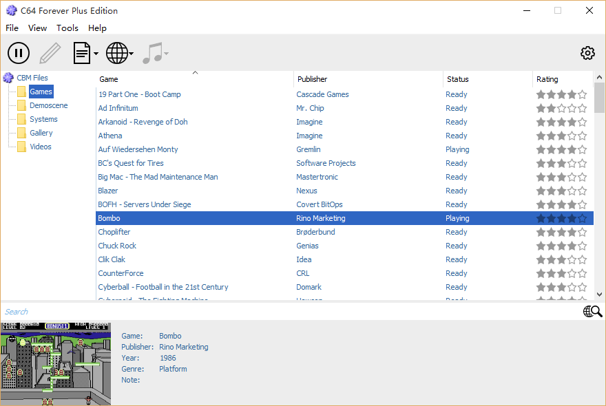 - RetroPlatform庫包括標題和配置數(shù)據(jù)為5000多C64游戲,在線更新