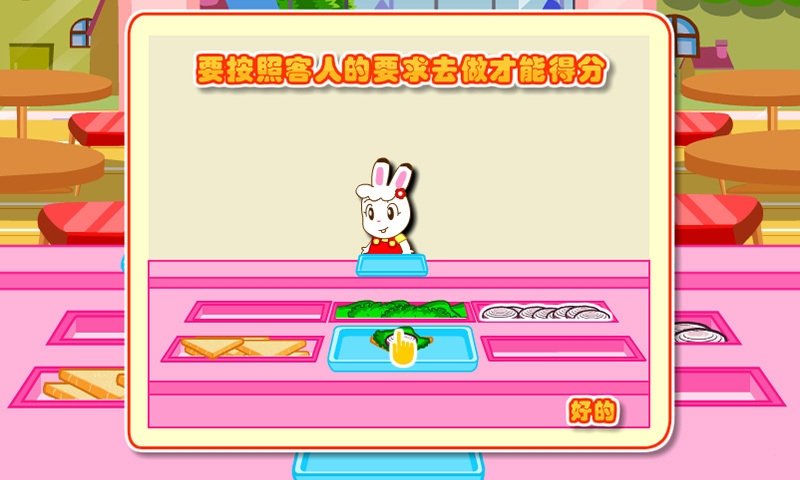 巧虎經(jīng)營的三明治店口感好又新鮮,客人都喜歡在她店里買三明治,這會(huì)客人實(shí)在太多了,大家快來幫幫她吧。滿足客人的需求,成功地經(jīng)營好三明治店。