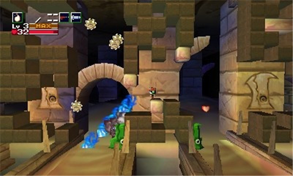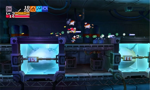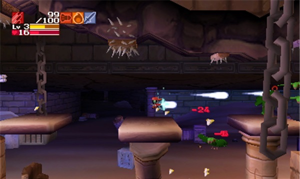 《洞窟物語3D》游戲性依舊令人沉醉。你會發(fā)現(xiàn)和原作相比游戲性方面幾乎未有任何改動,而任何玩過原作的玩家都知道——這些是它非常出色的部分。原本是側卷軸平臺類動作游戲,現(xiàn)在則增加了3D的背景縱深,玩家使用各種武器幫助自己的角色在一個又一個區(qū)域中前進,一點又一點的揭開劇情。