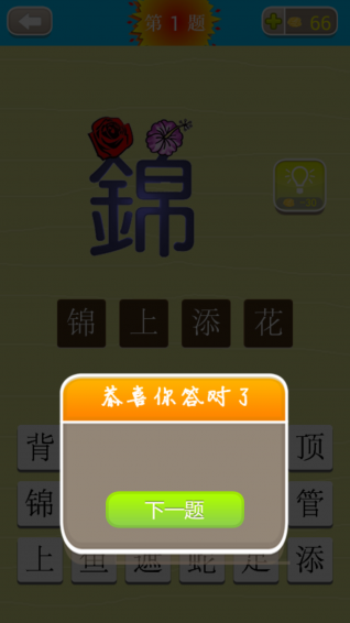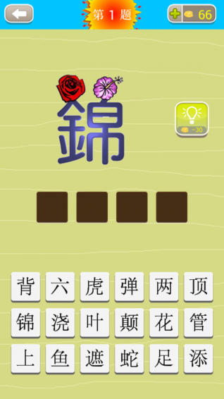 猜猜成語游戲 v1.1 安卓版 猜猜成語是一款非常有意思的成語類休閑游戲,它采用過關(guān)方式,簡單易玩,老少咸宜,玩家在游戲中就是根據(jù)圖片的提示,手動(dòng)的拼寫成語詞組,在娛樂中學(xué)習(xí)成語,享受全新的休閑樂趣。