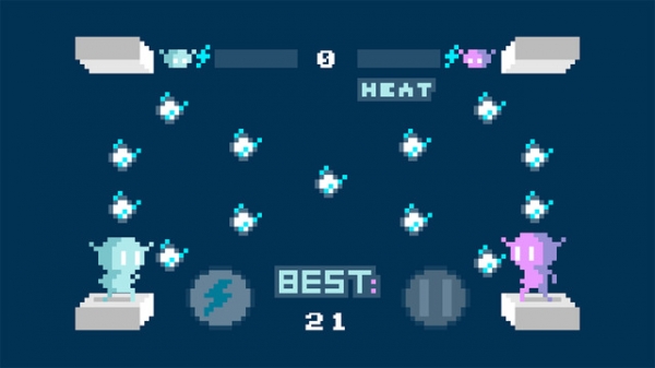 《空翻冠軍FlipChamps》是一款像素風格的休閑對戰(zhàn)游戲,玩家要在四個不同擁有不同技能的角色中選擇一個與AI進行對戰(zhàn)。對戰(zhàn)時,雙方要在四個平臺之間來回跳躍,收集能量球,當蓄滿能量后使用自己的技能向?qū)Ψ焦?。每個角色的技能用法都不一樣,了解自己和對手的技能是獲得勝利的關(guān)鍵。