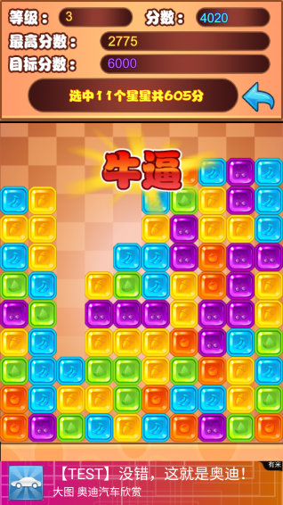 許多人連第3關(guān)都過不了!你的智商能過幾關(guān)?一款玩法簡單、內(nèi)容不簡單的不計時消除方塊游戲,點擊兩個以上同色方塊就可消除。玩法簡單易上手,聰明的你能消除多少個方塊呢?又能通過多少關(guān)呢?快來挑戰(zhàn)你的極限,并和你的朋友比一比,讓知道,誰更聰明!