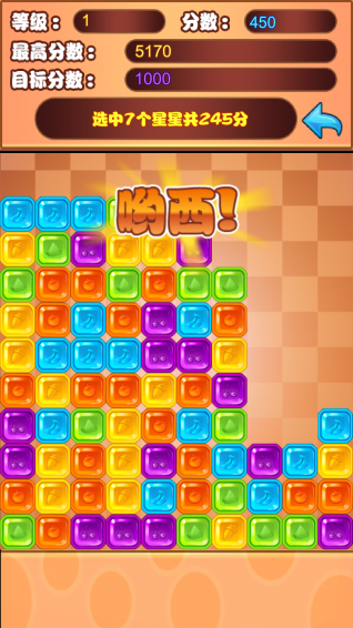 水晶方塊消除是一款益智消除類游戲,游戲的玩法類似于消滅星星,點擊兩個或兩個以上顏色相同的方塊即可消除,只有想方設(shè)法連接最多的方塊一次性消除,才可獲得高分,否則可能沒玩兩關(guān)就因為分數(shù)不夠失敗了。