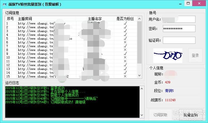 【戰(zhàn)旗TV粉絲批量簽到軟件使用說明】