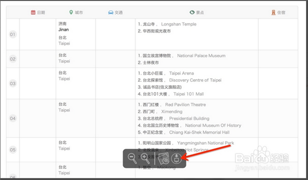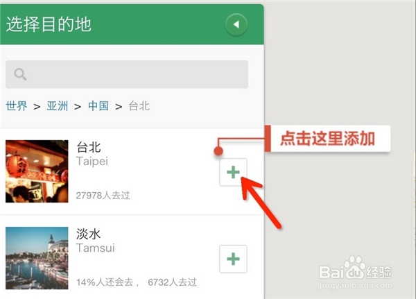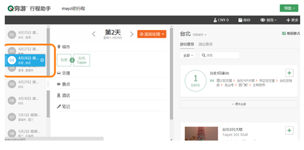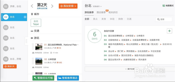 這里我們以只游玩臺(tái)北市為例。如果你還有其他城市,則回到左邊的城市中繼續(xù)添加到你的行程中