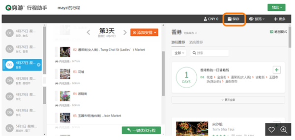 我們的行程是會(huì)實(shí)時(shí)自動(dòng)保存的。但您也可以點(diǎn)擊界面右上角的“保存”按鈕,進(jìn)行行程的保存操作。