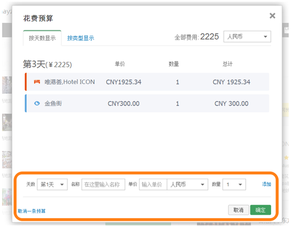 在界面的頂部,有一個(gè)“--元”的按鈕,點(diǎn)擊即可出現(xiàn)費(fèi)用面板。逐一添加費(fèi)用即可。