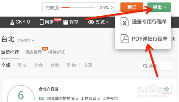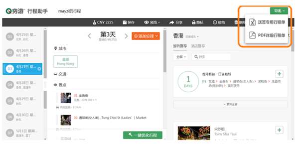 行程制定好了之后,點(diǎn)擊右上角的導(dǎo)出,把行程總體導(dǎo)出pdf格式的文件,更仔細(xì)的查看。