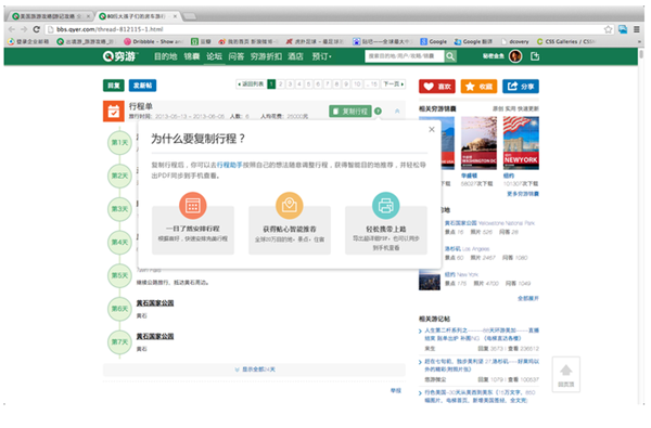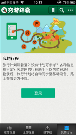 您可以下載最新版的窮游錦囊APP,并用窮游網(wǎng)賬號(hào)登錄,即可同步查看在網(wǎng)站上已經(jīng)制作好的行程,并支持離線閱讀,方便您在旅行途中隨時(shí)查閱。