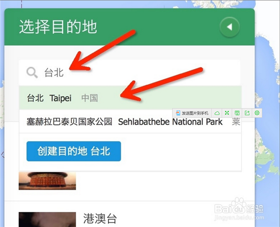 我們以臺(tái)北為例。輸入臺(tái)北,在下面顯示出來(lái)的提示框中選中臺(tái)北。