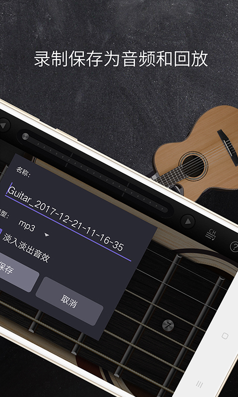 1.獨奏模式:真實模擬12品吉他;2.和弦模式:可選中7個常用和弦,在演奏時快速切換;
