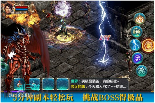 在國內(nèi)首次創(chuàng)造了“5分鐘副本、10分鐘競技場”輕松玩法,符合手機用戶的習慣。在副本內(nèi)挑戰(zhàn)高AI設定的BOSS。合理的搭配技能、裝備和道具是獲勝法寶,勝利后的獲得豐厚的獎勵。