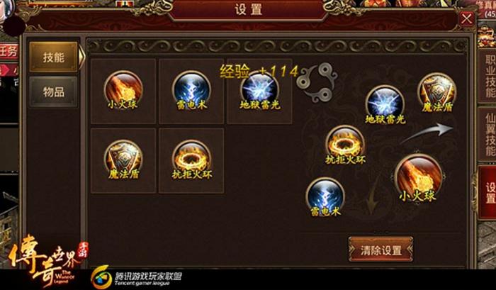在技能的界面中,選擇右側下方的設置,可以將常用技能設置在自己比較方便的位置上。這樣在操作的時候,可以手動點擊相應的技能來進行釋放,也可以點擊自動攻擊來掛機殺怪。