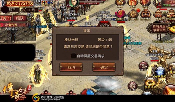 另一個玩家會收到彈窗提示,點擊“確定”可以進入到交易界面,點擊“取消”則會拒絕對方的交易請求。
