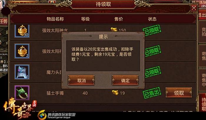 在“待領取”的界面下,玩家可以領取已超時的物品、領取出售成功獲得的元寶。未交易成功的商品,只會收取少量的寄售費用,不會收取手續(xù)費用。