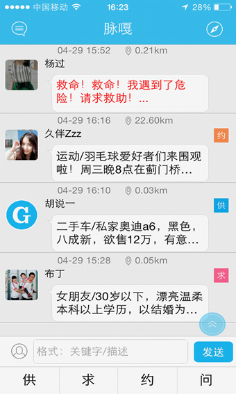 脈嘎app是一款非常特別的手機(jī)社交聊天軟件,它致力于即時(shí)解決人們的所有日常問題,將問題分解為“供、求、約、問”四個(gè)方面進(jìn)行匹配,用戶只要對上相應(yīng)的匹配規(guī)則,系統(tǒng)就會即時(shí)反饋,自動尋找相應(yīng)的答案,讓用戶體驗(yàn)到最高效的功能服務(wù)。